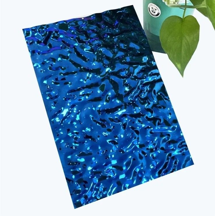 La feuille d'eau ondulée en acier inoxydable bleu saphir est un matériau décoratif, une petite feuille d'eau ondulée en acier inoxydable à l'apparence de pierre précieuse bleue.Ce matériau est généralement utilisé pour la décoration et la conception, et son apparence peut donner aux gens un effet d'onde d'eau, et en même temps présente des couleurs de saphir.